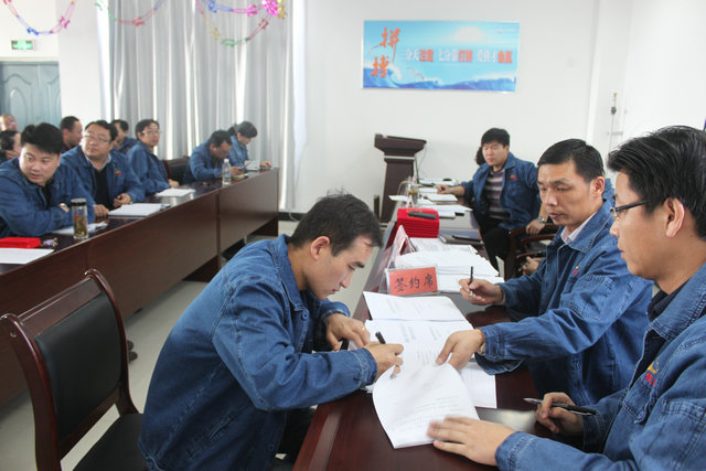 會(huì )議由總支書(shū)記鄧武輝主持,工區經(jīng)理趙先斌作了《齊心協(xié)力 攻關(guān)克難  落實(shí)責任 確保全面完成2014年全年各項任務(wù)》工作報告,工區技術(shù)負責人龍希彬同志對工區《2014年生產(chǎn)經(jīng)營(yíng)管理辦法》進(jìn)行了解讀,總支書(shū)記鄧武輝和經(jīng)理趙先斌分別與副職領(lǐng)導及各項目經(jīng)理簽訂了《工程項目安全生產(chǎn)管理目標責任書(shū)》、《黨風(fēng)廉政建設責任目標書(shū)》及《項目部信訪(fǎng)穩定綜治工作目標責任書(shū)》。