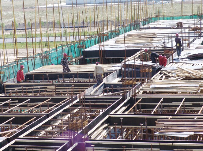 我公司承建的五五工業(yè)園生活用房工程,現已施工到二層頂板,正在作業(yè)的是頂板模板的支護,此工程東西長(cháng)104m,南北寬48.8m,面積達1552.18㎡??缍确浅4?,模版支護操作起來(lái)比較困難,但我們的勞務(wù)隊專(zhuān)業(yè)素質(zhì)水平很高,面對問(wèn)題,迎難而上,頭頂烈日,工作激情依然高漲,搶進(jìn)度,保質(zhì)量,注安全,都想在勞動(dòng)競賽上拔得頭籌。