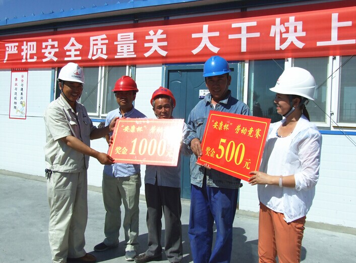 據悉,該公司自6月份開(kāi)展 “安康杯”勞動(dòng)競賽活動(dòng)以來(lái),五五園區項目部積極響應公司號召,組織11支勞務(wù)隊參加競賽活動(dòng)。其中,在6月底的檢查評比中,該項目部有6支勞務(wù)隊分別獲一二三等獎。劉運喜勞務(wù)隊獲得一等獎,公司獎勵1000元;馬福良和劉國峰勞務(wù)隊獲二等獎,公司各獎勵500元;劉文兵、丁雙良和李大田勞務(wù)隊獲三等獎,公司分別各獎勵300元。