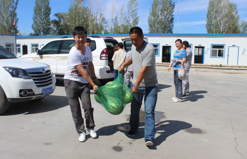 (通訊員:虞俐瑾)628日至日30日,烈日炎炎,酷暑難擋,連續的高溫天氣考驗著(zhù)奮戰在生產(chǎn)一線(xiàn)的員工,也心系著(zhù)集團領(lǐng)導。集團公司工會(huì )主席李桂萍、黨辦副主任孟慶忠、團委副書(shū)記晁震一行3人從奎屯出發(fā),趕赴北方建設集團路橋分公司北屯項目部、北屯分公司、富蘊項目部,帶著(zhù)裝有西瓜、大肉、藿香正氣口服液等防暑降溫物品的“大禮包”,來(lái)到施工現場(chǎng)親切慰問(wèn)了一線(xiàn)員工,給他們送去了夏日里的絲絲“清涼”,也帶來(lái)集團公司黨委對員工的一份濃濃關(guān)愛(ài)之情。