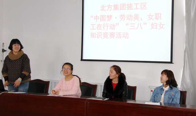 (通訊員 葉兆英) 女職工的四期保護指哪些?家庭美德的主要內容是什么?女職工生育享受不少于多少天的產(chǎn)假?…310日,隨著(zhù)一個(gè)個(gè)激烈的問(wèn)答和歡快的笑語(yǔ)聲,北方建設集團獨工區婦女知識搶答賽及婦女維權周活動(dòng)正在四樓會(huì )議室有條不紊地進(jìn)行著(zhù)。