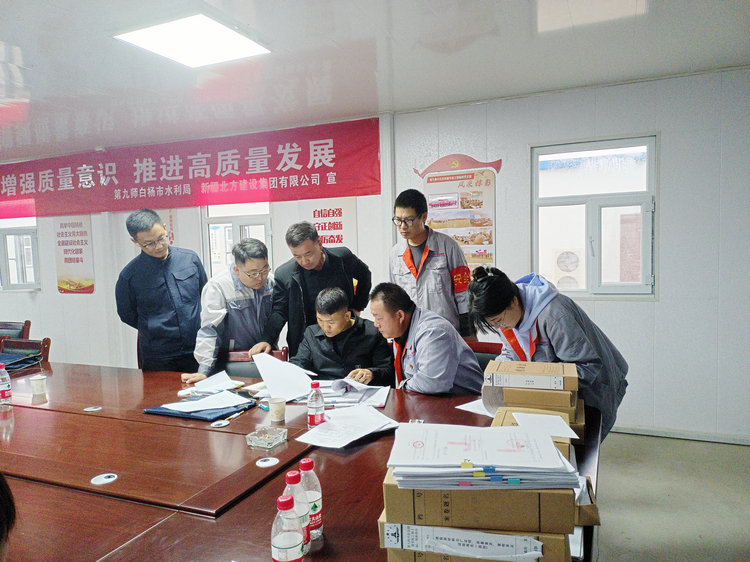 檢查中,檢查組一行人在聽(tīng)取現場(chǎng)負責人對此工程近期施工情況簡(jiǎn)要匯報后,對正在施工的現場(chǎng)進(jìn)行了實(shí)地督查,并指出了現場(chǎng)施工存在的薄弱環(huán)節,要求即刻整改。隨后兵團質(zhì)監站對本工程施工資料及安全資料進(jìn)行了檢查指導。