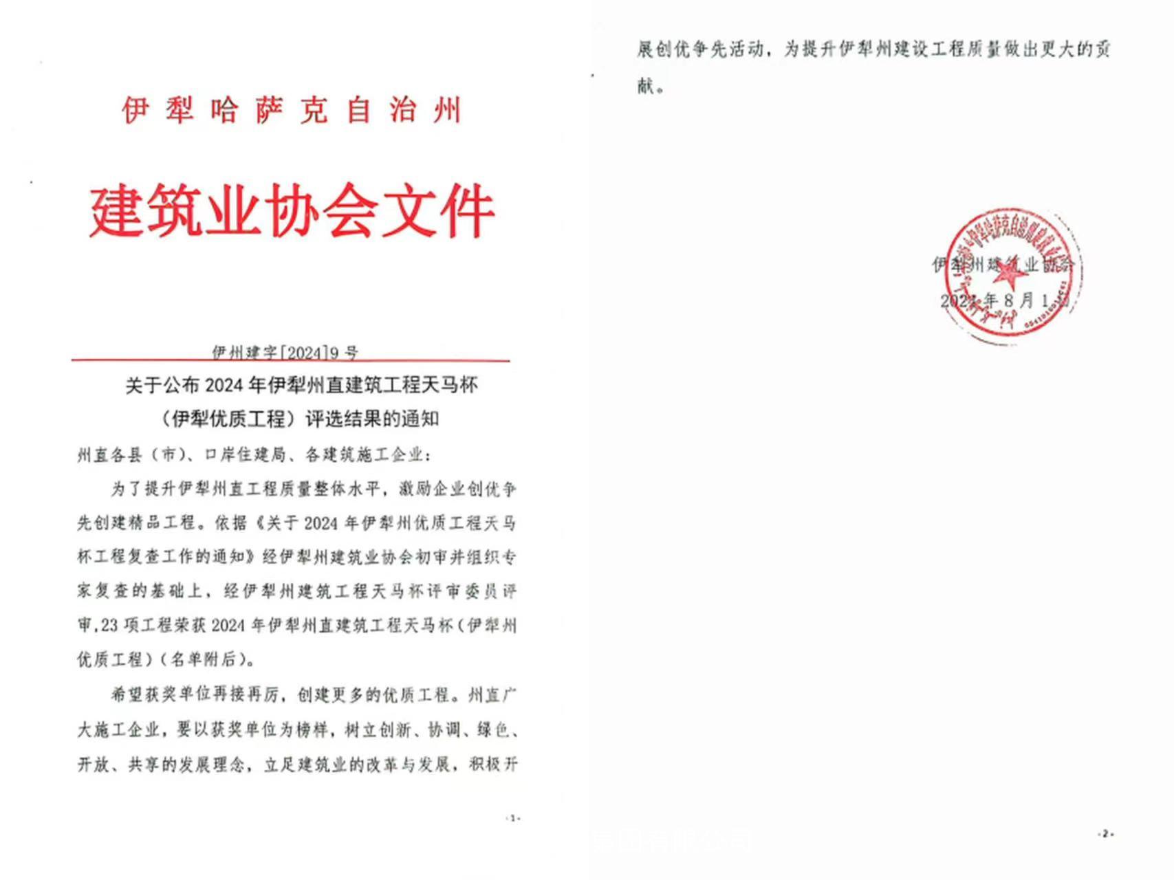 喜訊!新疆北方建設集團三項工程 榮獲2024年新疆伊犁州直建筑工程“天馬杯”